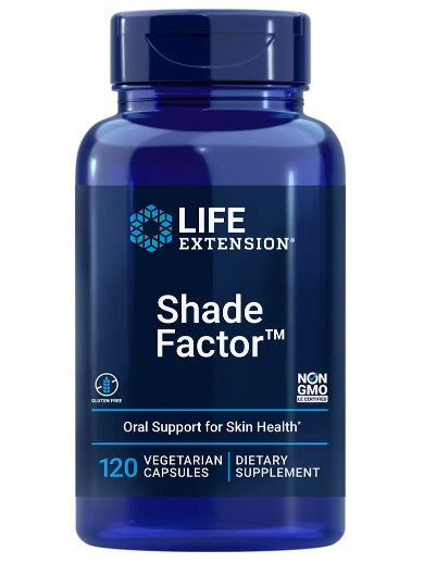 Shade Factor also contains Red Orange Complex, a standardized extract that is obtained from three red orange varieties. Active phenolic compounds, including anthocyanins, flavanones, and hydroxycinnamic acids (as well as ascorbic acid) work together to support the body's natural immune response against the age-related effects of ultraviolet exposure.