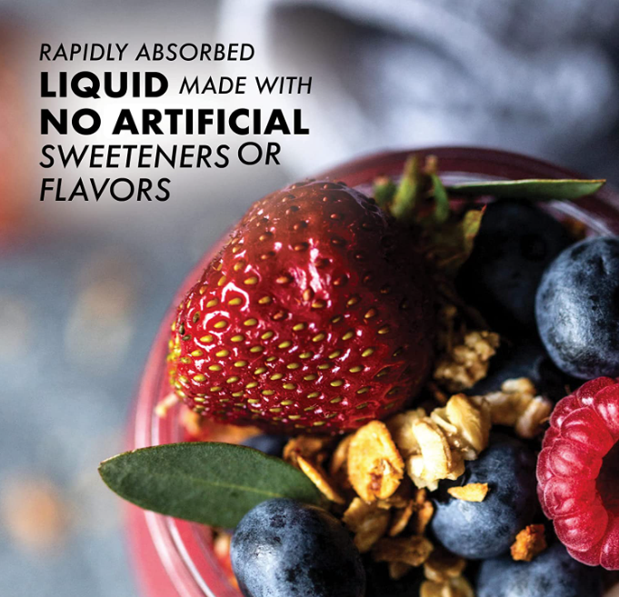 - Filtered water, fructose, citric acid, natural blueberry, natural raspberry and natural strawberry flavors, xanthan gum, carrageenan.