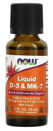 Liquid D-3 & MK-7, Mint Flavor, 1 fl oz (30 ml), by NOW