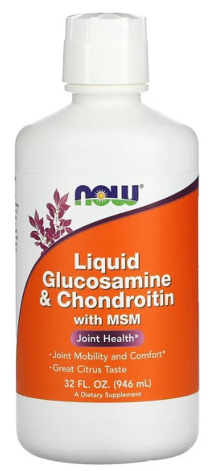 NOW® Liquid Glucosamine & Chondroitin with MSM combines three of the best known nutrients available for the support of healthy joints in a convenient liquid form. Scientific studies have demonstrated that Glucosamine and Chondroitin can promote normal joint mobility and comfort. MSM is present as naturally occurring sulfur compound and Manganese and Vitamin C have been included as complementary ingredients to provide optimal nutritional support for the production of healthy joint structures.