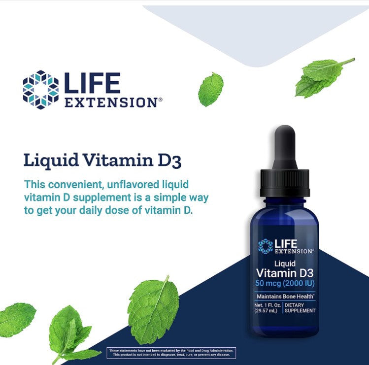 Liquid Vitamin D3, 50 mcg (2,000 IU), 1 fl oz (29.57 ml), by Life Extension