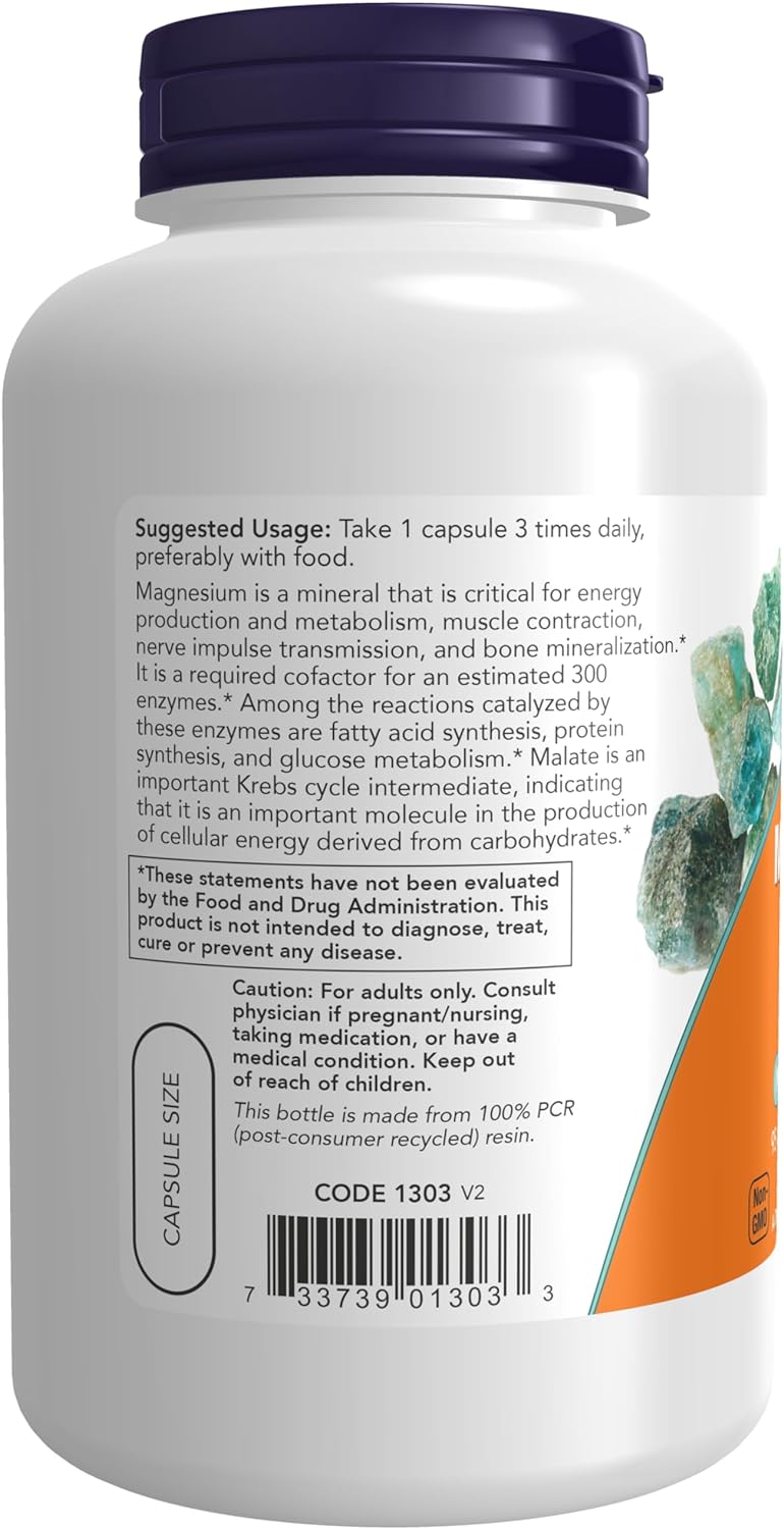 NOW® Magnesium Malate is a fully reacted mineral supplement.