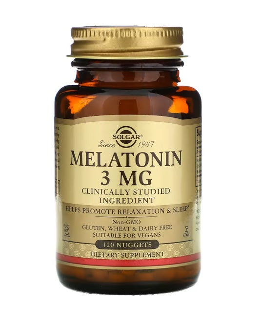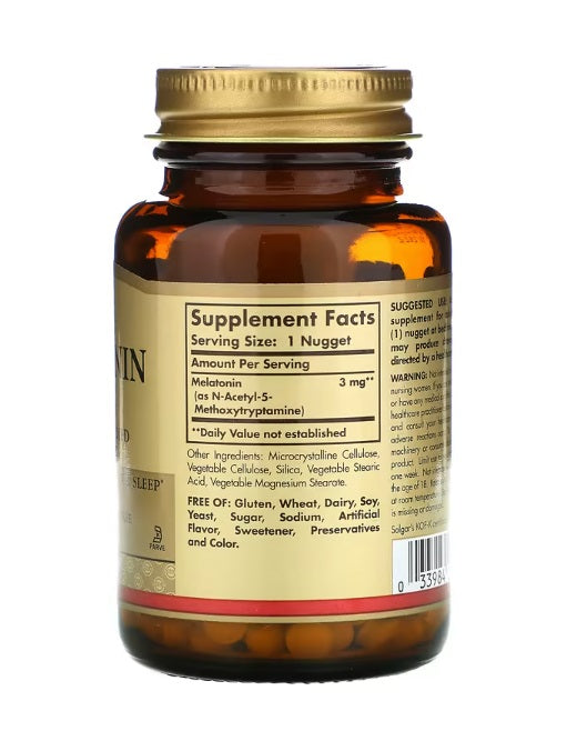 Solgar's Melatonin 3 mg Nuggets are a terrific choice for people experiencing occasional sleeplessness, those with jet lag or anyone wanting to promote sound, quality sleep. This product works with your natural sleep cycle to give you the tranquil rest you deserve, so you can awaken feeling refreshed and revitalized.