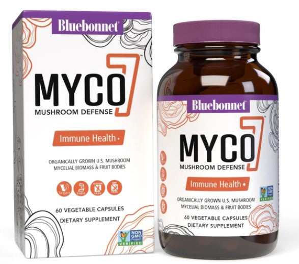 Bluebonnet's Myco-7™ Mushroom Defense Vegetable Capsules are an excellent way to start your day because they help to support immune health, energy & vitality and daily wellness.