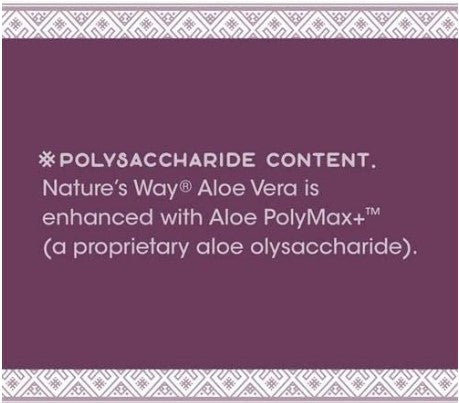 #1 in Polysaccharide Content. Polysaccharides may be responsible for many of aloe’s health benefits. Nature’s Way Aloe Vera is enhanced with Aloe PolyMax+ (a proprietary aloe polysaccharide extract). Nature's Way Aloe Vera also contains over 200 other naturally occurring nutrients such as enzymes, amino acids, sterols and more.