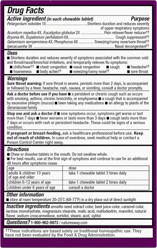 - Minor Aches/Pains, Congestion, Cough, Fever, Runny Nose, Sore Throat