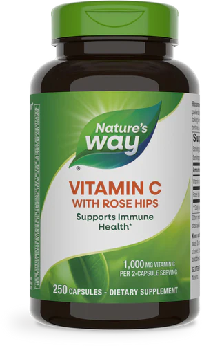 Vitamin C with Rose Hips provides antioxidant protection, strengthens collagen and maintains white blood cell function.