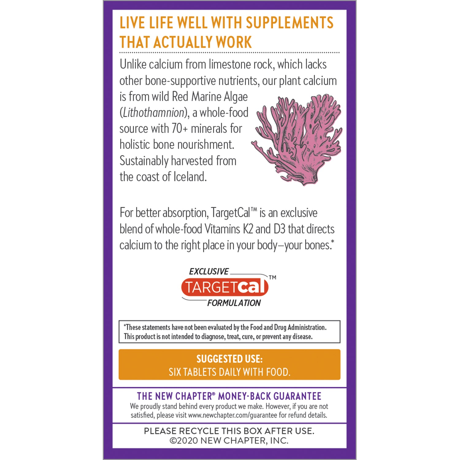 Formulated with TargtCal, featuring Natural Vitamin K2, which directs calcium to the bones, where you need it, and keeps it out of the arteries where you don’t.