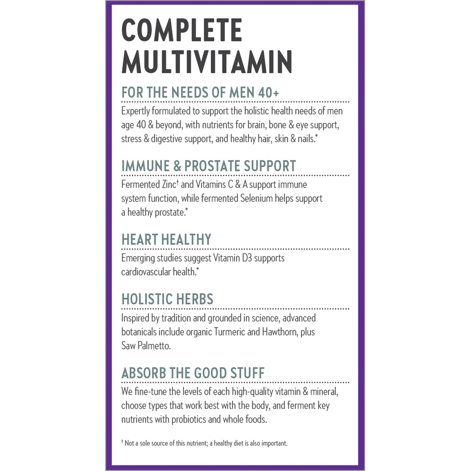 Every Man's 40+ is a once-daily probiotic whole-food complexed multivitamin formulated specifically for men 40 and over.