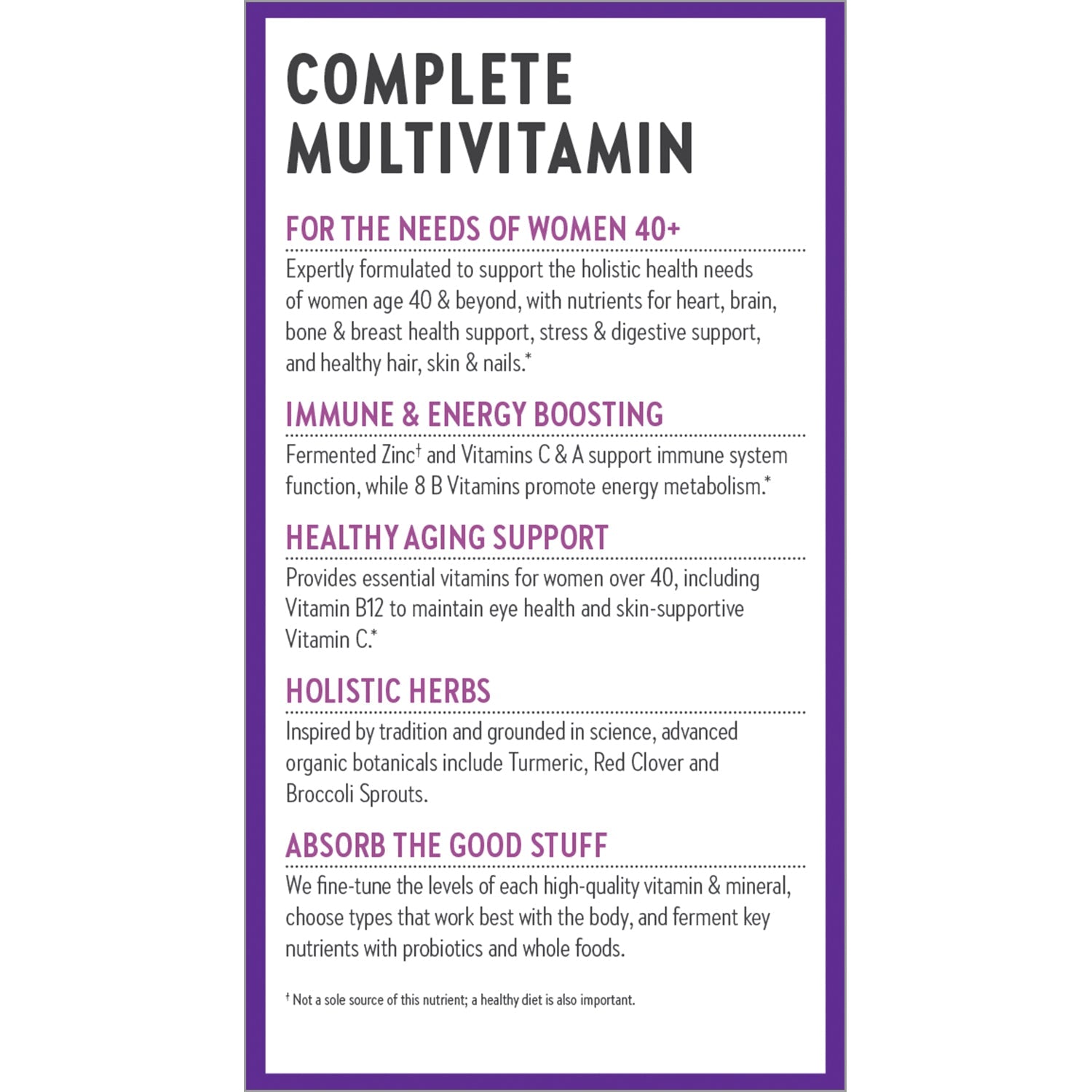 Every Woman's One Daily 40+ is a once-daily probiotic whole-food complexed multivitamin formulated specifically for woman 40 and over.