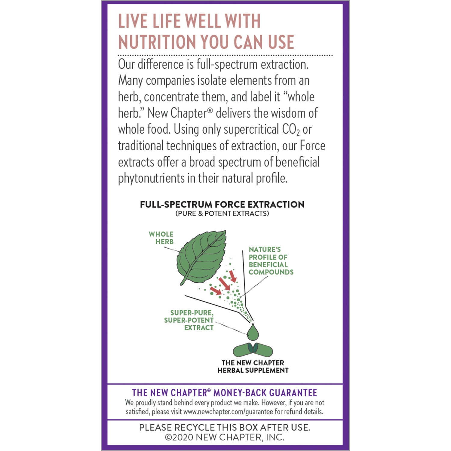 Many companies isolate elements from an herb, concentrate them, and label it "whole herb." New Chapter delivers the wisdom of whole food. Using only natural supercritical CO2 or traditional techniques of extraction, our Force extracts guarantee the fullest spectrum of beneficial phytonutrients in their natural profile.