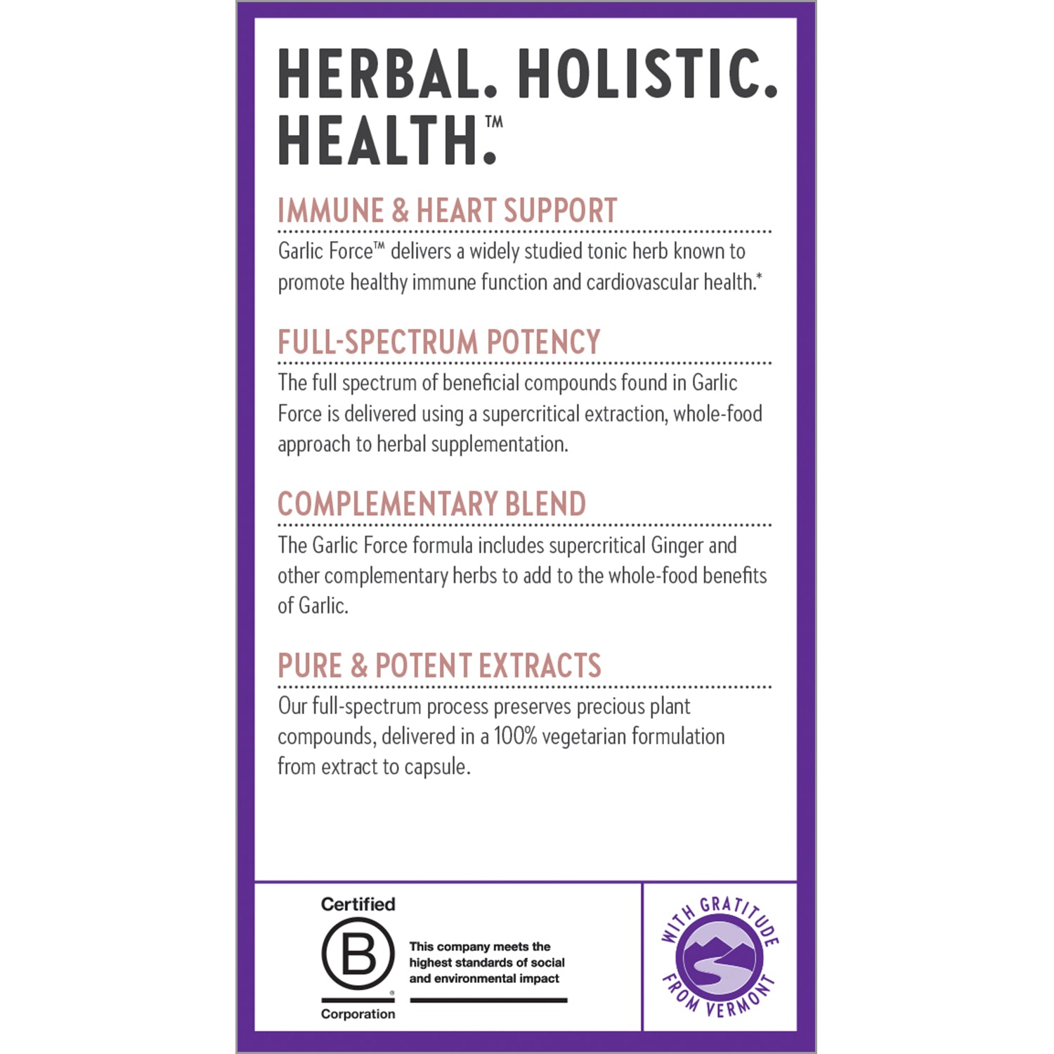 The Garlic Force formula includes supercritical Ginger and other complementary herbs to add to the whole-food benefits of Garlic.