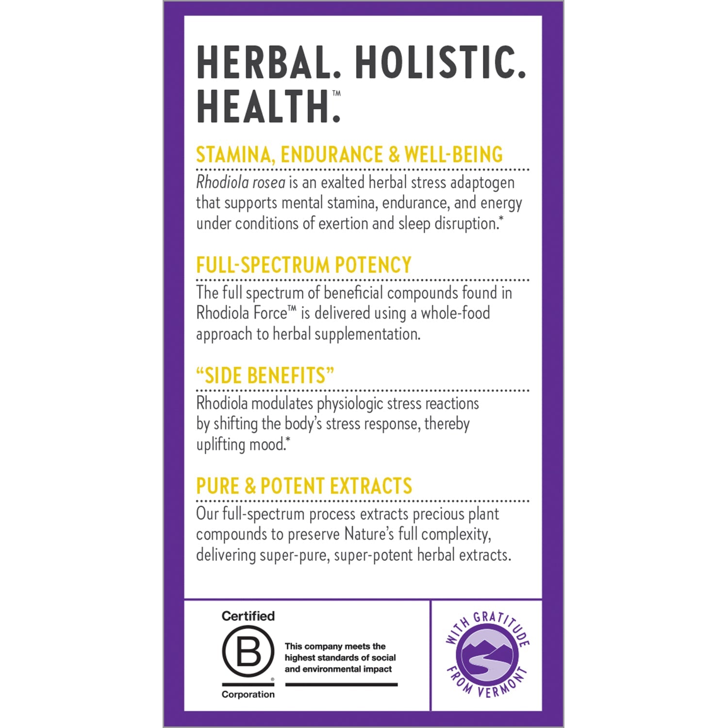 The full spectrum of beneficial compounds found in Rhodiola Force 300 is delivered using a whole-food approach to herbal supplementation.