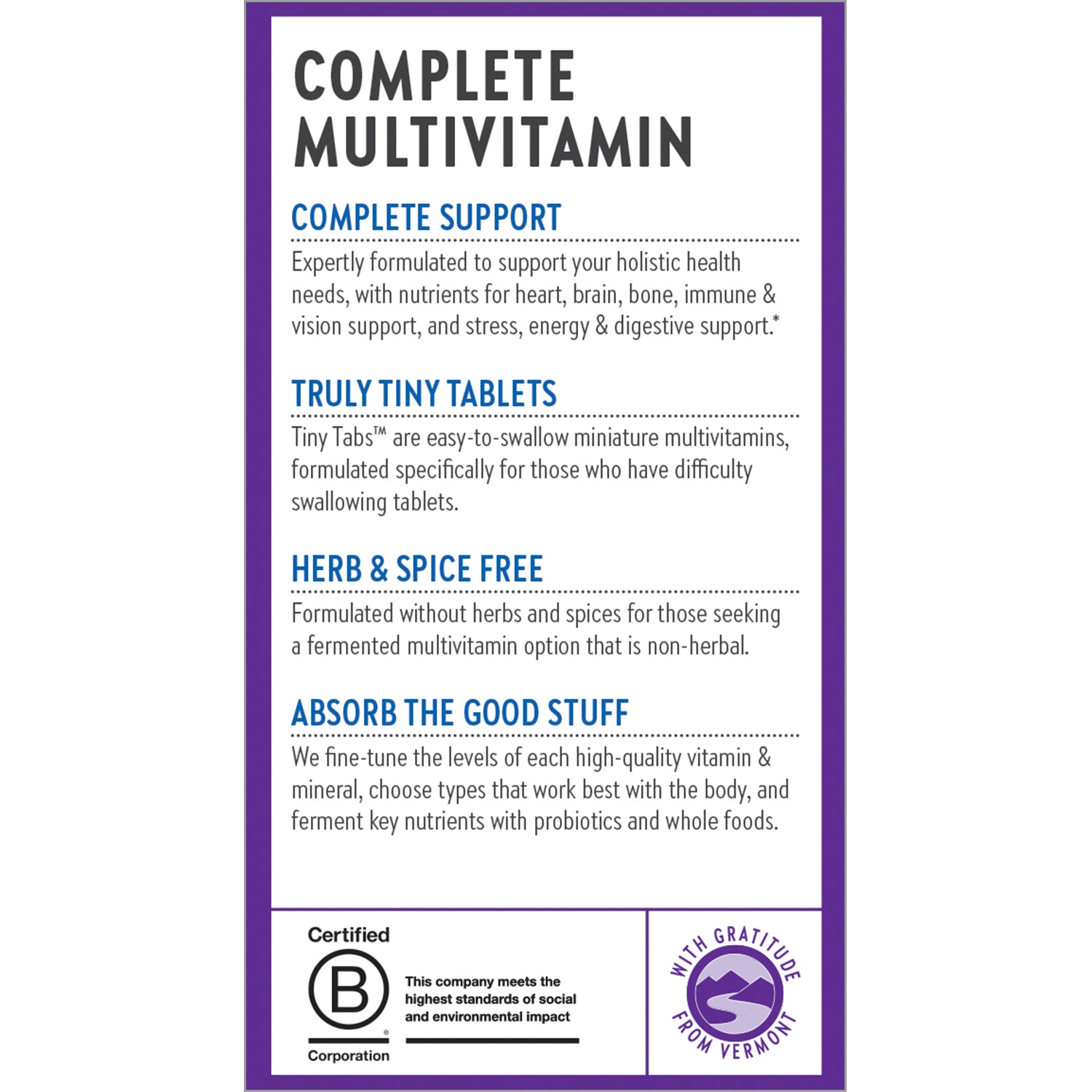 Formulated without herbs and spices for those seeking a non-herbal whole-food complexed multi-vitamin option.