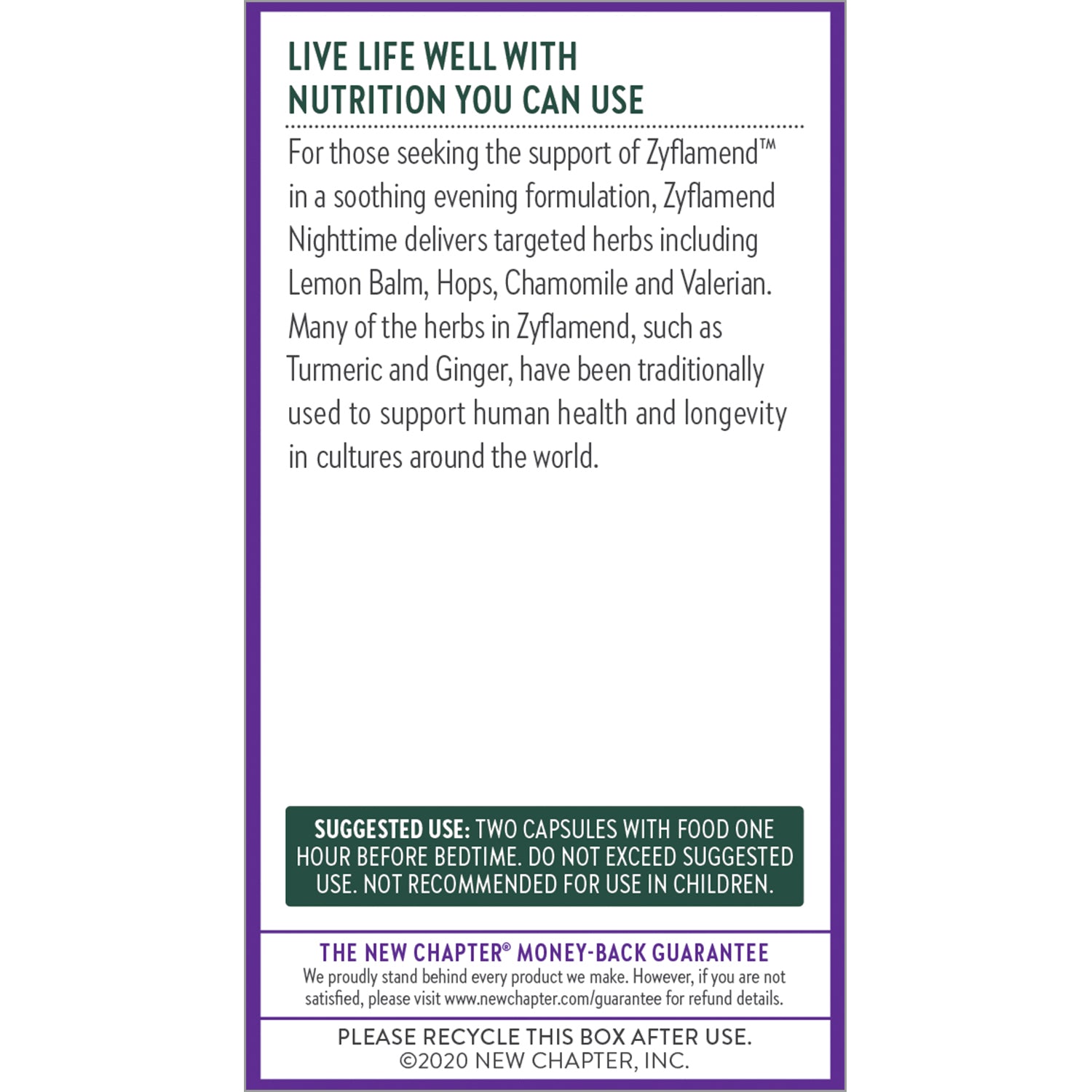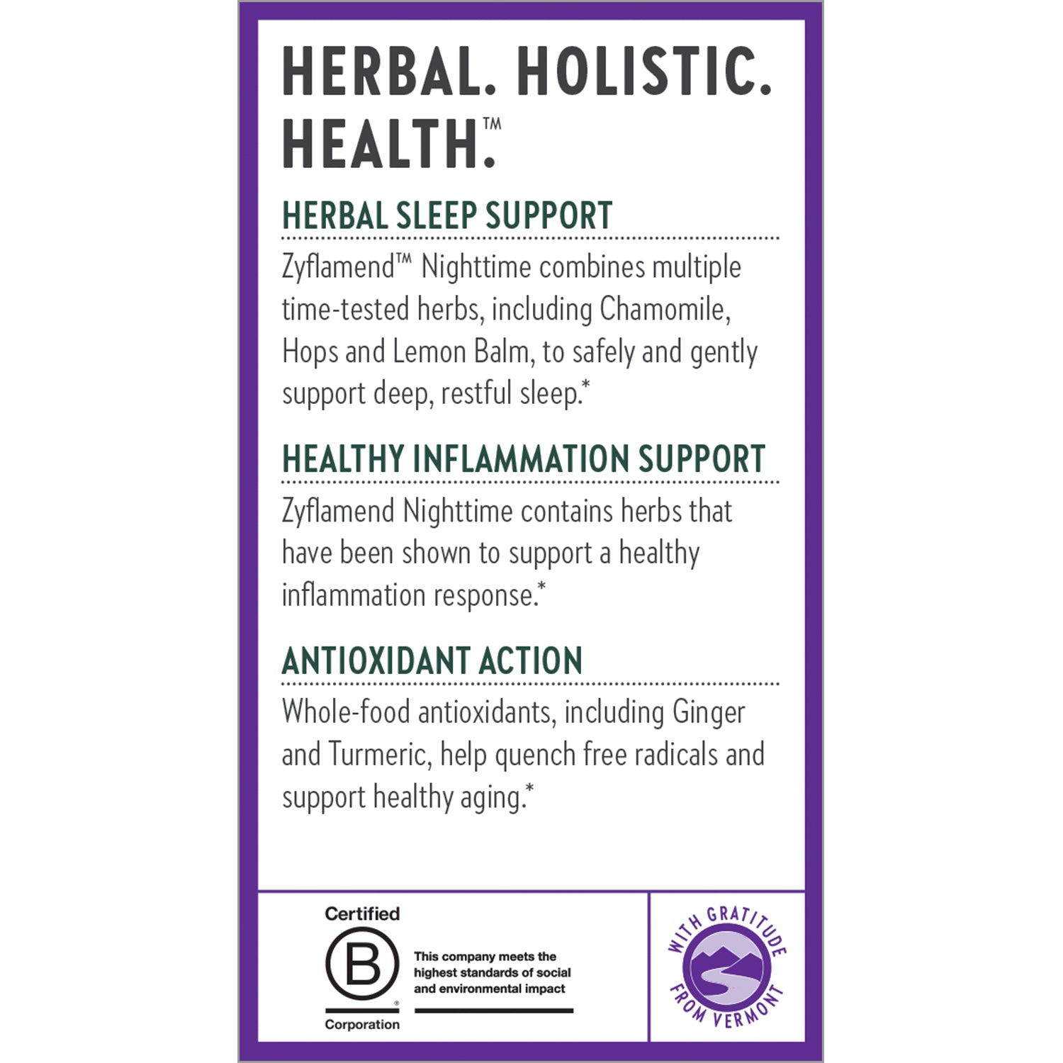 Zyflamend Nighttime combines multiple time-tested herbs, including Chamomile, Hops and Lemon Balm to safely and gently support deep, restful sleep.