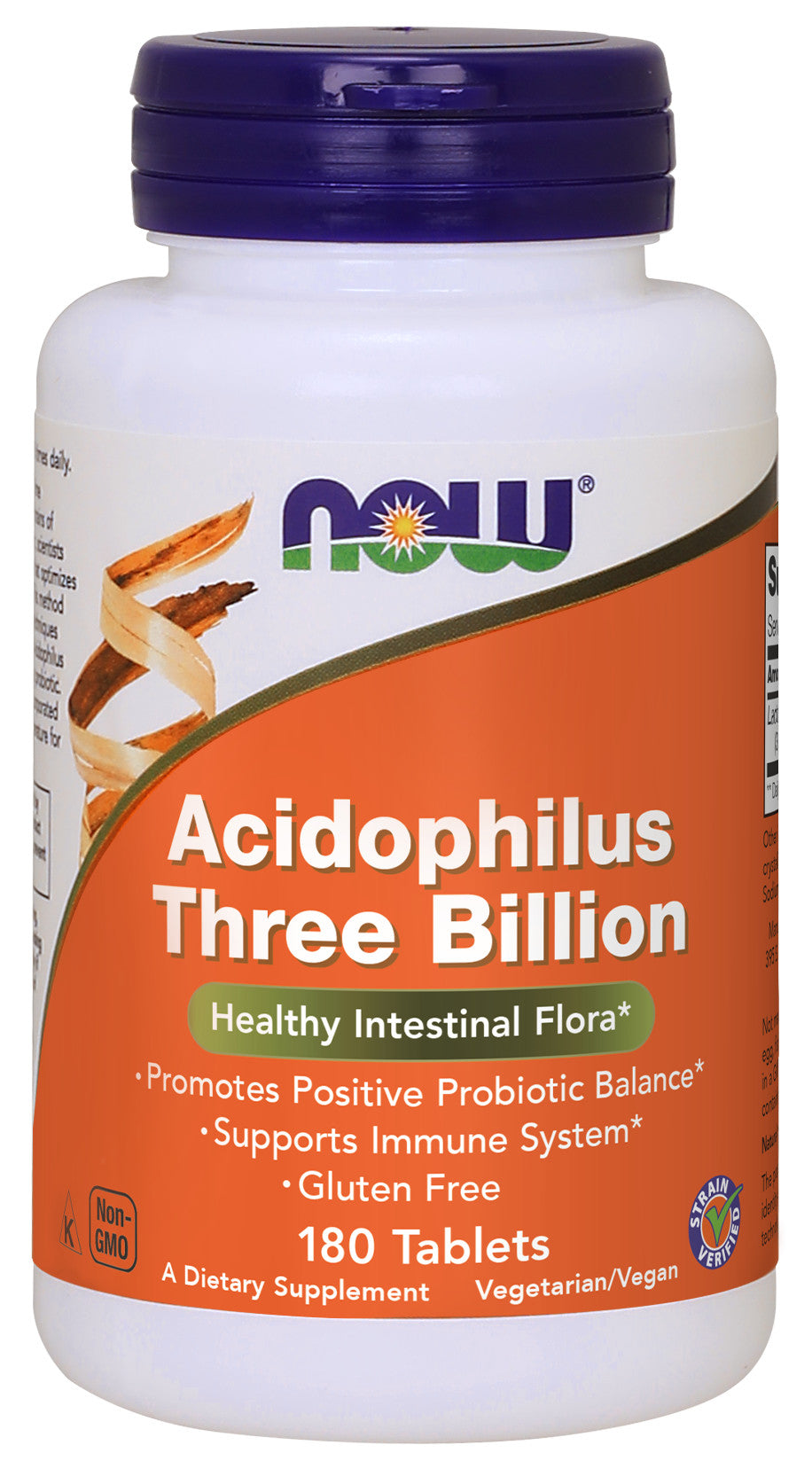 NOW Stabilized Acidophilus is a real-time lab-tested Acidophilus. Because some strains of Acidophilus are more stable than others, scientists have developed a proprietary method that optimizes growth medium during fermentation. This method uses specific fermentation and drying techniques to ensure that each batch of Stabilized Acidophilus has the hardiest strains of this important probiotic. In addition, substantial overages are incorporated to guarantee full potency at room temperature for the entire life of the product. Finally, Stabilized Acidophilus is packaged in glass for maximum protection from moisture.