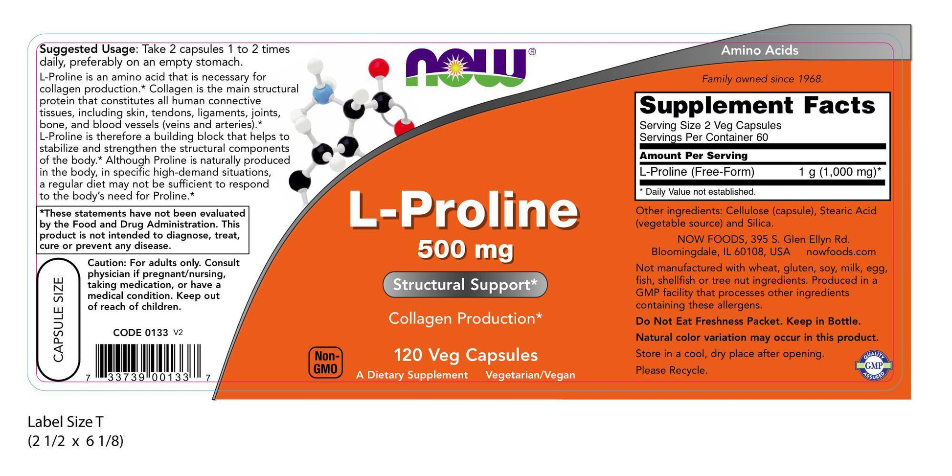 L-Proline 500 mg 120 Veg Capsules
