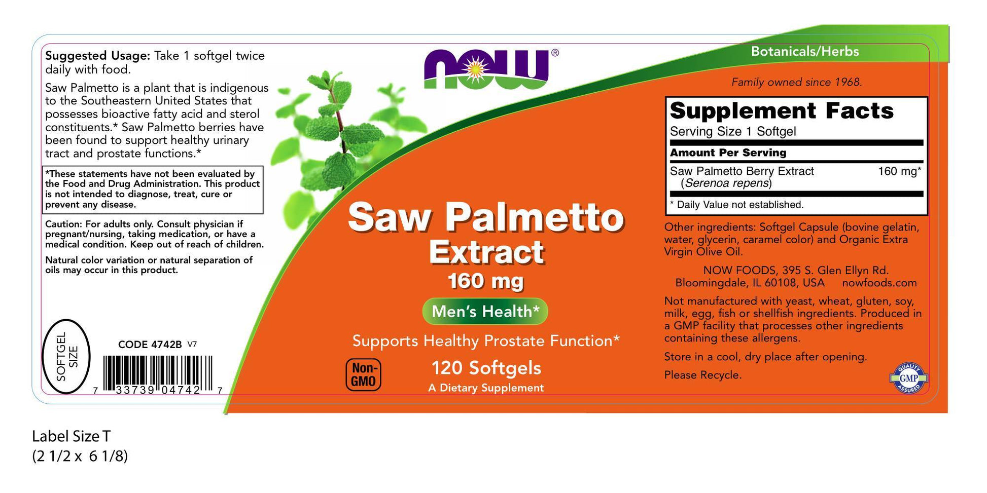 Saw Palmetto Extract 160 mg 120 Softgels