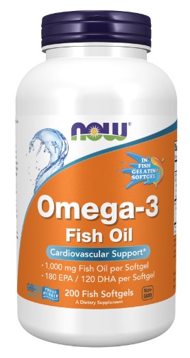 Omega-3 Fish Oil, Molecularly Distilled 200 Fish Softgels, by NOW