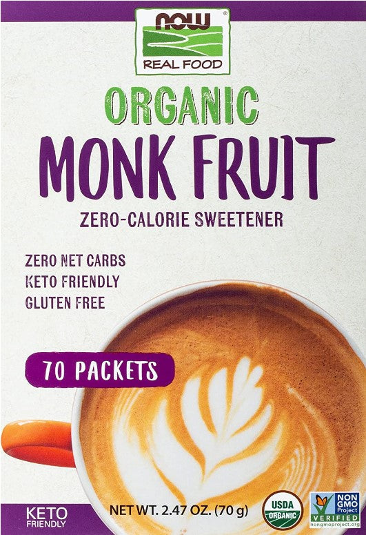 Organic Monk Fruit Zero-Calorie Sweetener, 70 Packets, 2.47 oz (70g), by NOW