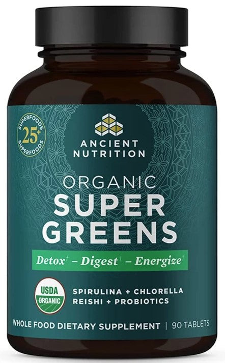 Organic SuperGreens Detox, Digest, Energize, 90 Tablets, by Ancient Nutrition