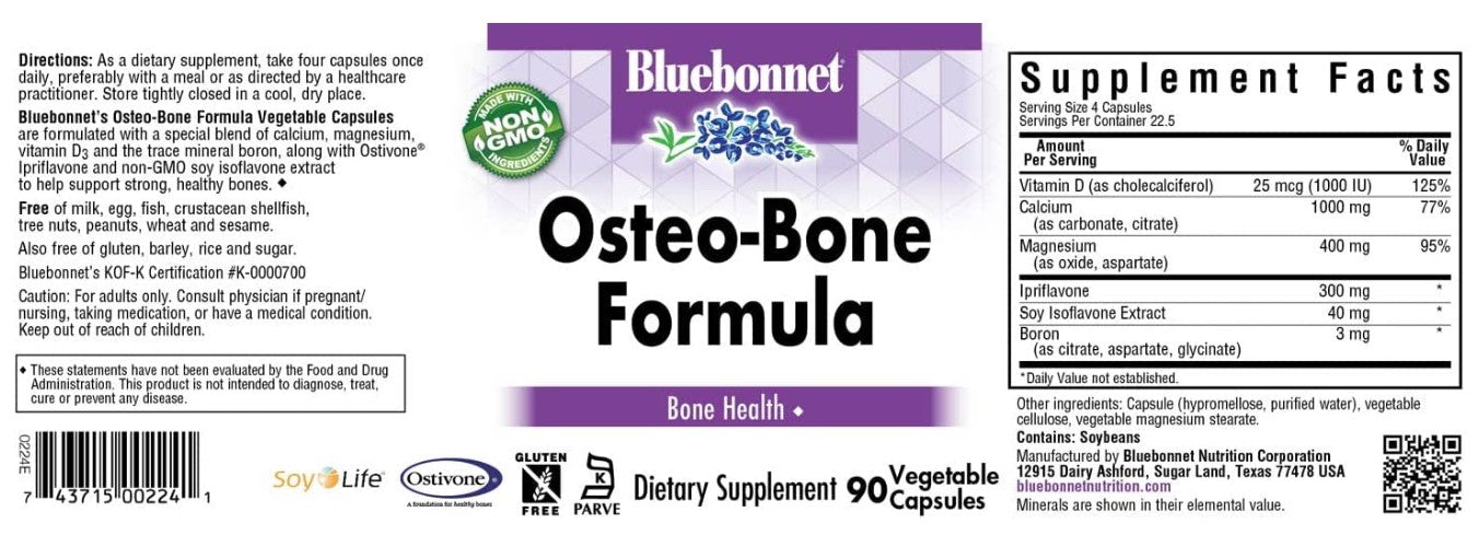 Osteo-Bone Formula, 90 Vegetable Capsules, by Bluebonnet
