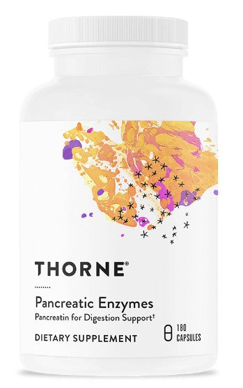 Pancreatic enzymes are essential for digestion and absorption of nutrients after they leave the stomach and arrive in the small intestine.* This important step assures that the nutrients we take in are delivered to our body.* Supplementing with Thorne's Pancreatic Enzymes supports this natural process for individuals who need a little extra help.* A decrease in enzyme secretion from the pancreas can occur as a normal part of aging.