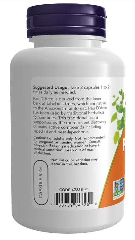 Pau D'Arco 500 mg 100 Veg Capsules, by NOW