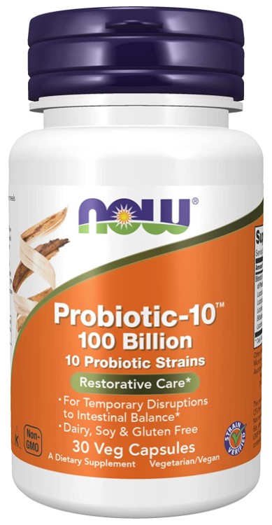 NOW Probiotic-10 offers a balanced spectrum of live organisms consisting of acid-resistant probiotic bacterial strains that are known to naturally colonize the human GI tract. Probiotic bacteria are critical for healthy digestion, help maintain the integrity of the intestinal lining, support proper intestinal motility and participate in the detoxification process. This potent Probiotic-10 formula delivers 100 billion live organisms to help restore healthy flora following occasional but temporary disruptions to intestinal balance.
