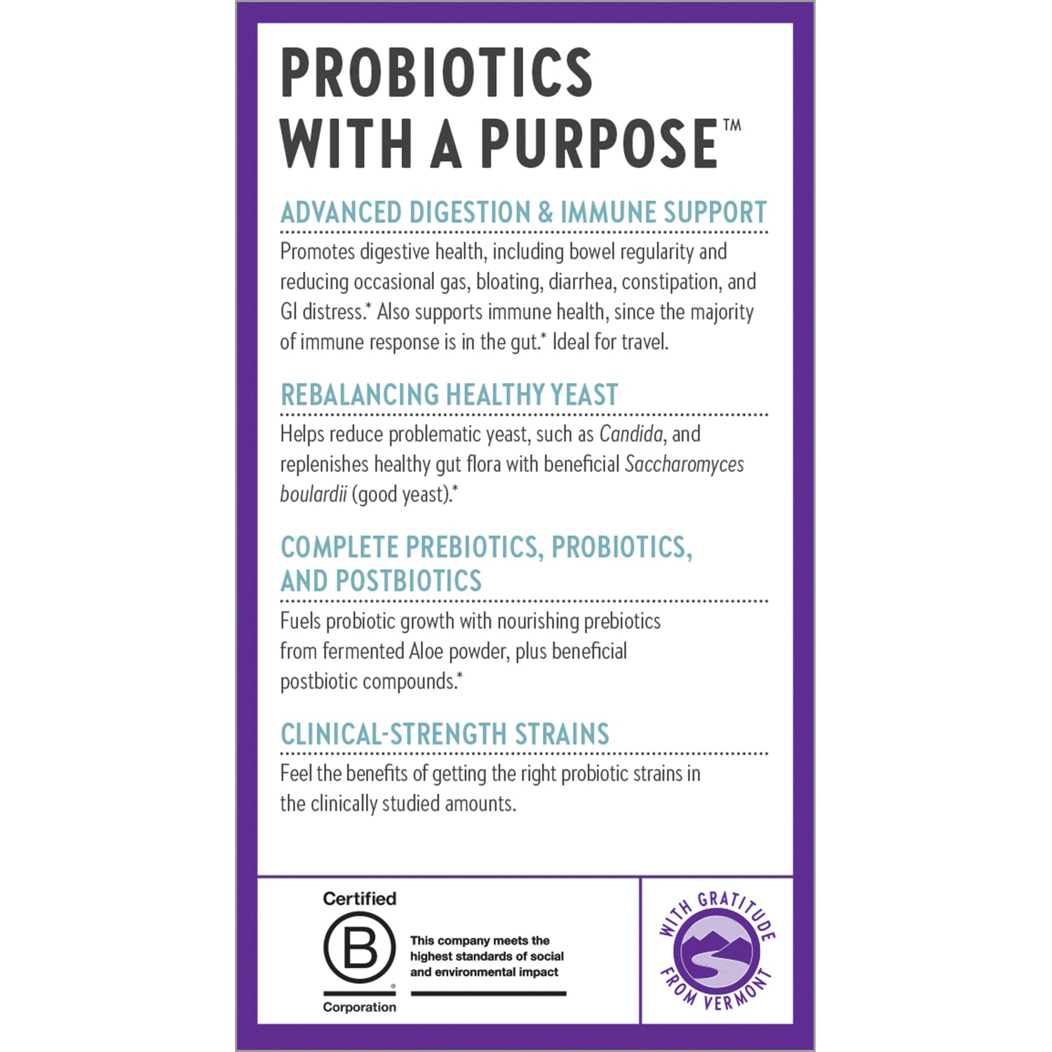 - Identity assured strains support immune defenses and promote digestive health.