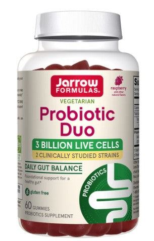 Probiotic Duo, Raspberry, 3 Billion Live Cells, 60 Gummies, by Jarrow Formulas