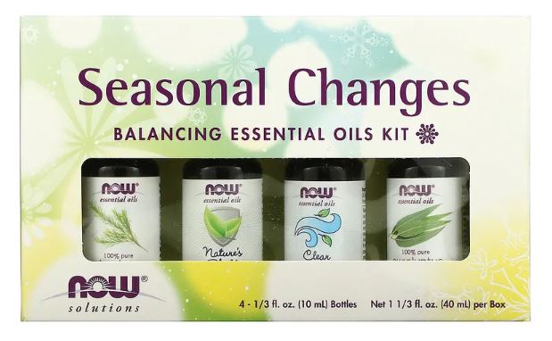 For many of us the change of the season is an exciting time that heralds the arrival of special holidays or outdoor fun. But for some these changes aren't quite so magical. If you're one who dreads the seasonal switch, take heart! Now® Solutions Seasonal Changes Essential Oil Kit was created just for you. Our unique collection of natural aromas, including Tea Tree and Eucalyptus Radiata oils, as well as our Clear the Air and Nature's Shield oil blends, can help ease seasonal transitions so you can get back to doing what you love.