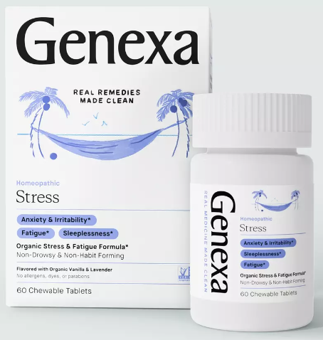 Genexa Stress is a real remedy, made clean. This homeopathic remedy addresses symptoms associated with stress such as fatigue, nervousness, irritability, and hypersensitivity*.