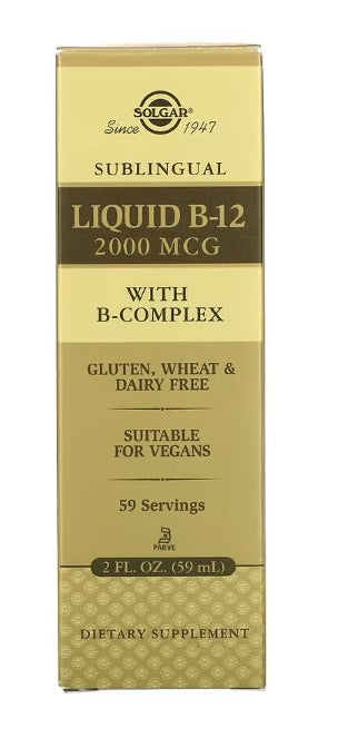 Solgar's Sublingual Liquid B-12 2000 mcg with B-Complex is designed to provide an advantage over conventional B-Complexes by offering an easy-to-use liquid formula for anyone who has difficulty in swallowing tablets or capsules. Our liquid formula also does not need to be broken down in the digestive tract as compared to a standard pill.