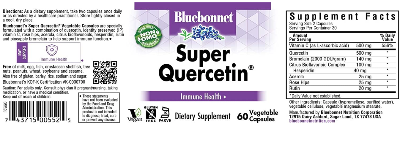 Super Quercetin, 60 Vegetable Capsules, by Bluebonnet