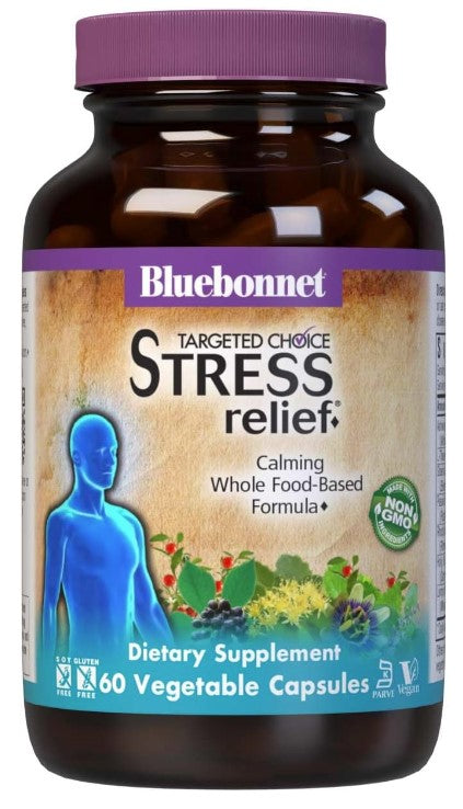 Bluebonnet's Targeted Choice® Stress Relief Capsules contain a unique blend of sustainably harvested or wildcrafted herbal extracts plus the amino acid derivative, L-theanine, to help the body and mind adapt and cope with occasional stressors whole promoting an overall sense of relaxation.