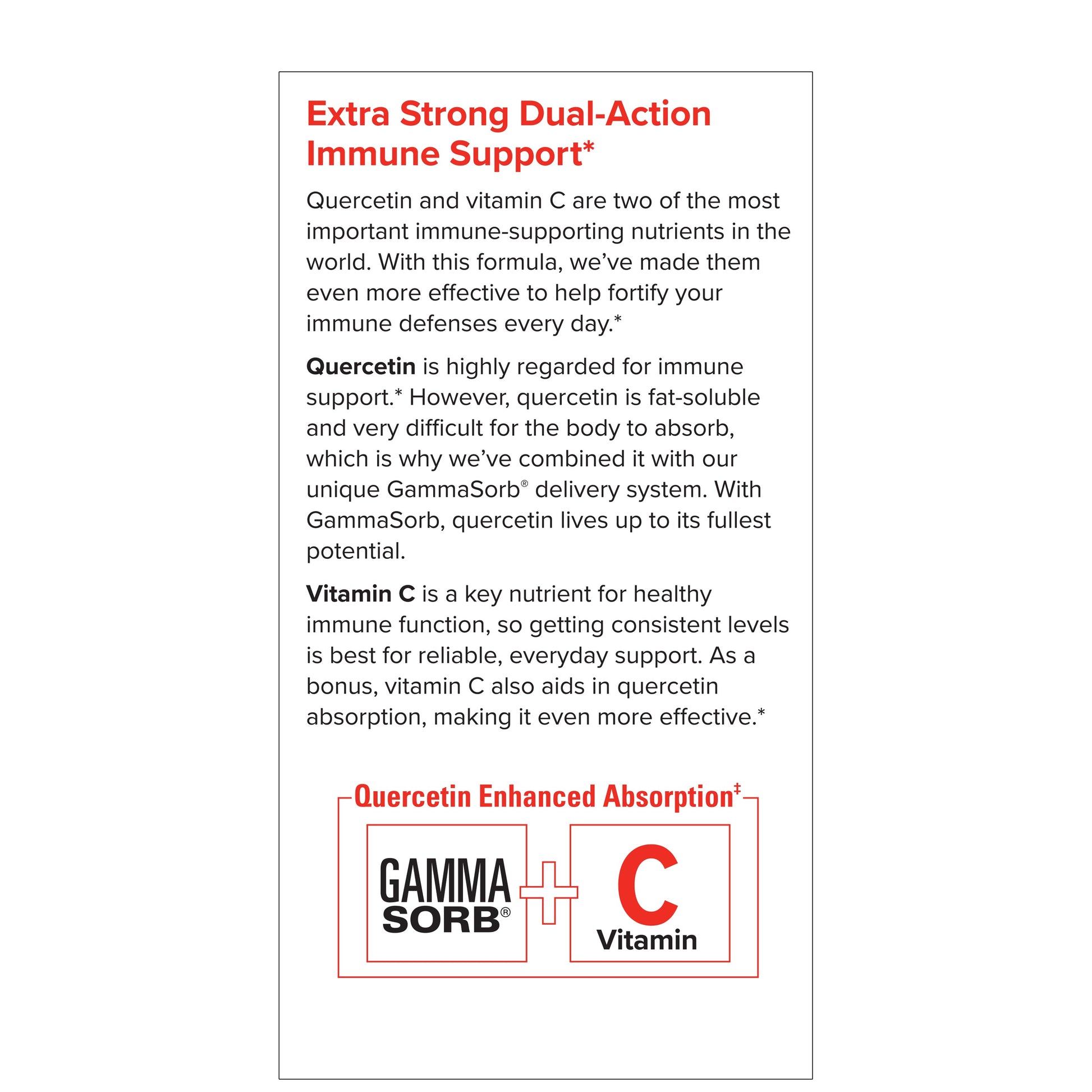 Quercetin and vitamin C are two of the most important immune-supporting nutrients in the world. With this formula, we’ve made them even more effective to help fortify your immune defenses every day.*