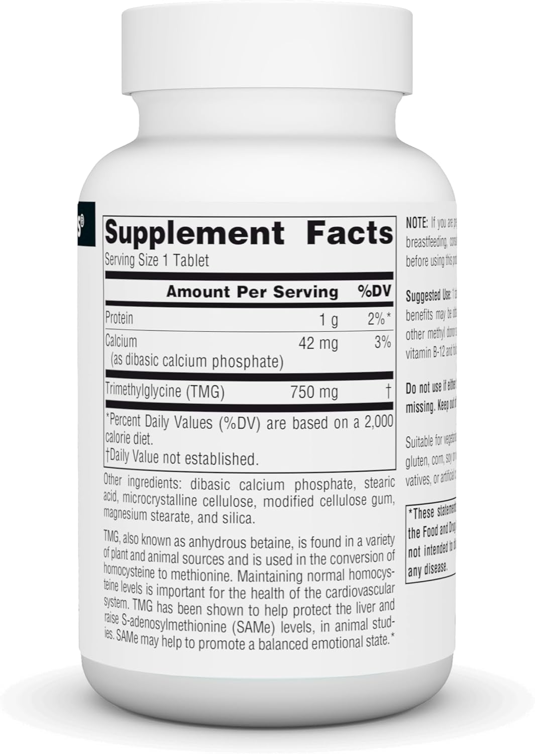 TMG 750mg Trimethylglycine (Anhydrous Betaine) - 60 Tablets by Source Naturals