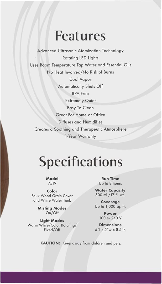 Ultrasonic Faux Wood Grain Essential Oil Diffuser by NOW
