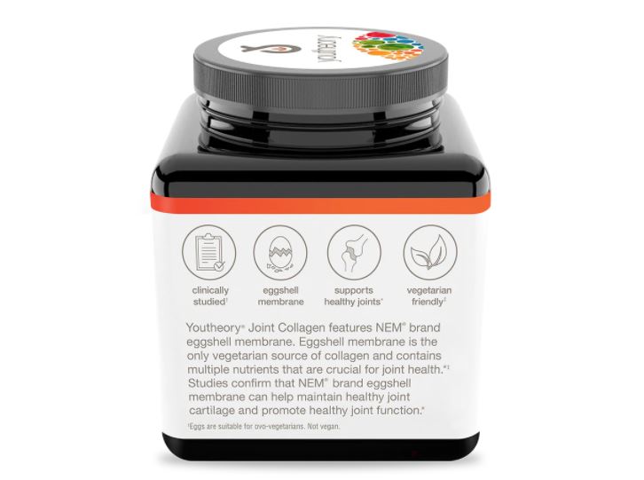 Youtheory® Joint Collagen features NEM® brand eggshell membrane. Eggshell membrane is the only vegetarian source of collagen and contains multiple nutrients that are crucial for joint health. Studies confirm that NEM® can help improve joint comfort, promote joint flexibility, and reduce joint stiffness. This powerful formula also supplies a targeted botanical blend, including a high potency Boswellia extract that works quickly.