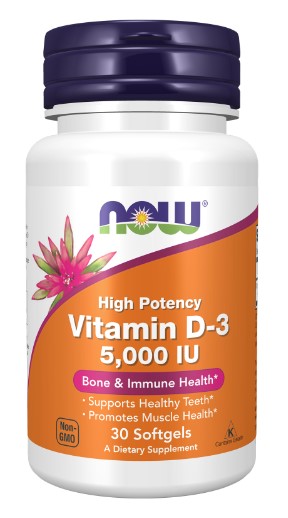 Vitamin D-3 5,000 IU - 30 Softgels, by NOW