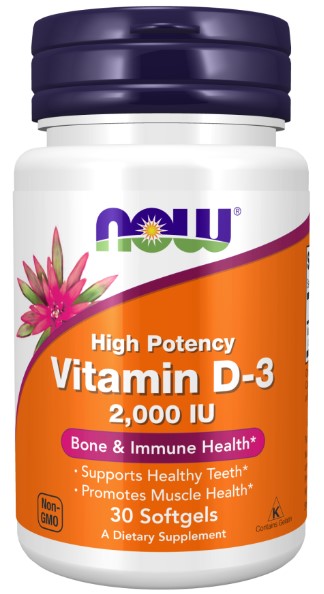 Vitamin D-3 50 mcg (2000 IU), 30 Softgels, by NOW