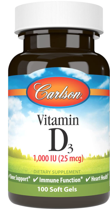 Carlson Vitamin D3 1,000 IU (25 mcg) is the preferred form of vitamin D that's important for promoting strong bones and supporting immune system and heart health. Higher levels of vitamin D3 in the blood are associated with strong bones and good health, as well as a strong immune system. Each soft gel provides 1,000 IU (25 mcg) of vitamin D3.