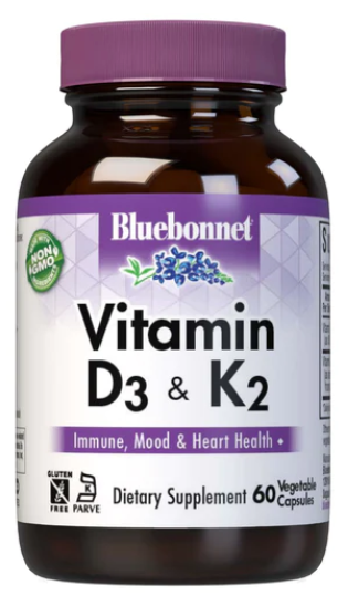 Vitamin D3 (125 mcg) & K2 (100 mcg), 60 Vegetable Capsules, by Bluebonnet