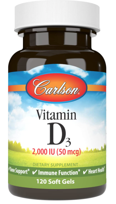 Carlson Vitamin D3 2,000 IU (50 mcg) is the preferred form of vitamin D that's important for promoting strong bones and supporting immune system and heart health. Higher levels of vitamin D3 in the blood are associated with strong bones and good health, as well as a strong immune system. Each soft gel provides 2,000 IU (50 mcg) of vitamin D3.