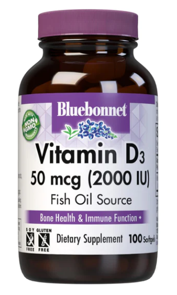 Vitamin D3 2000 IU 100 Softgels, by Bluebonnet