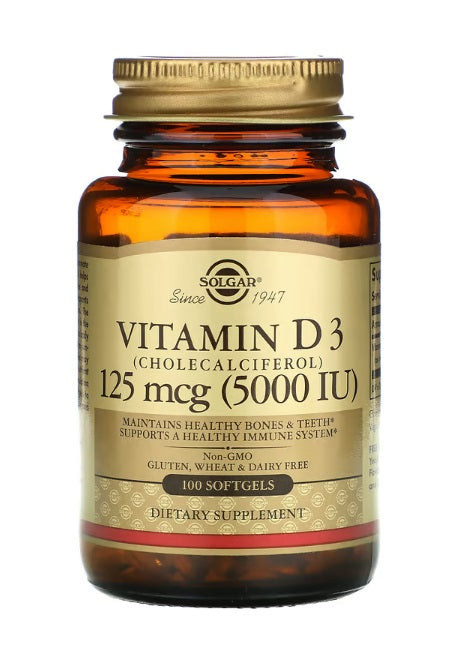 Vitamin D3 (Cholecalciferol) 125 mcg 5,000 IU 100 Softgels