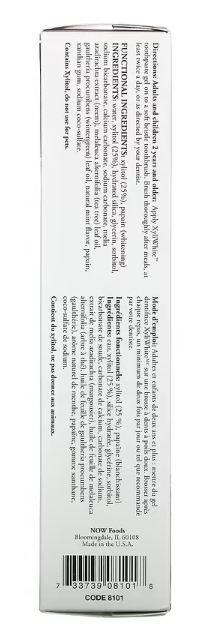 Ingredients: Water, xylitol (25%), hydrated silica, glycerin, sorbitol, sodium bicarbonate, calcium carbonate, sodium carbonate, melia azadirachta extract (neem), melaleuca alternifolia (tea tree) leaf oil, gaultheria procumbens (wintergreen) leaf oil, natural mint flavor, papain, xanthan gum, sodium coco-sulfate.